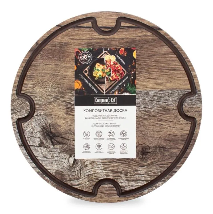 "COMPOSE EAT" Surface" Доска круглая для сервировки и нарезки d 25см, цв.дуб мореный DSJ2500634KL6