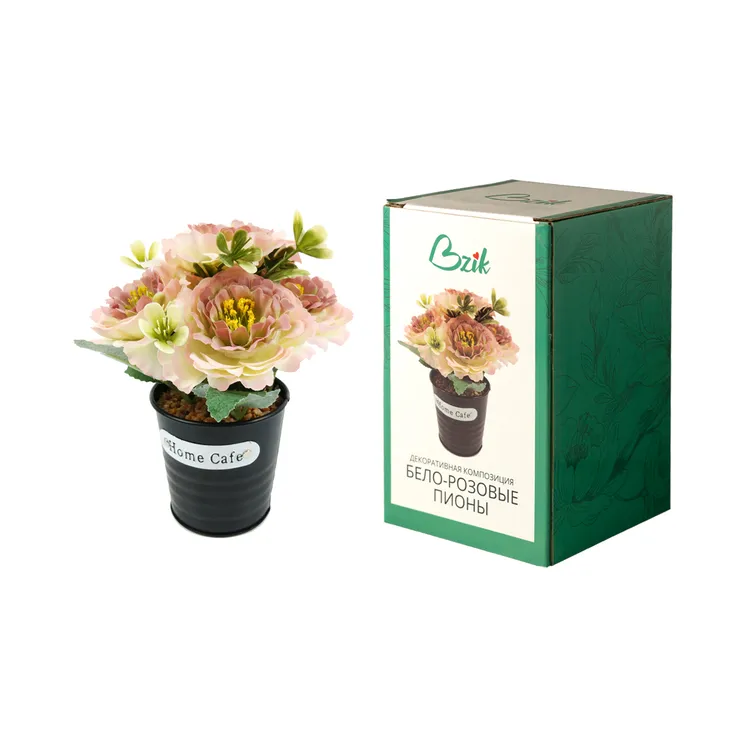 Декоративная композиция "Бело-розовые пионы" - это великолепное украшение для любого интерьера. Это композиция искусственных растений в металлическом горшке, которая внесет в ваш дом атмосферу свежести и естественности.