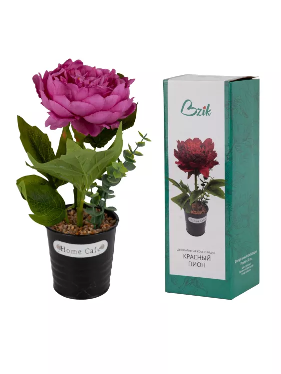 Композиция "Красный пион" обладает вечной свежестью и неподвластна времени, так как выполнена из качественных искусственных материалов, искусно имитирующих натуральный цветок. Это универсальное декоративное решение, которое привнесет в вашу жизнь красоту без ежедневного ухода, делая каждый день чуточку ярче и красочнее.