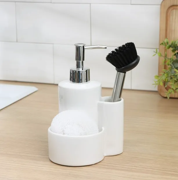 Дозатор для моющего средства с подставкой для губки и щетки "Милитари" 370мл
