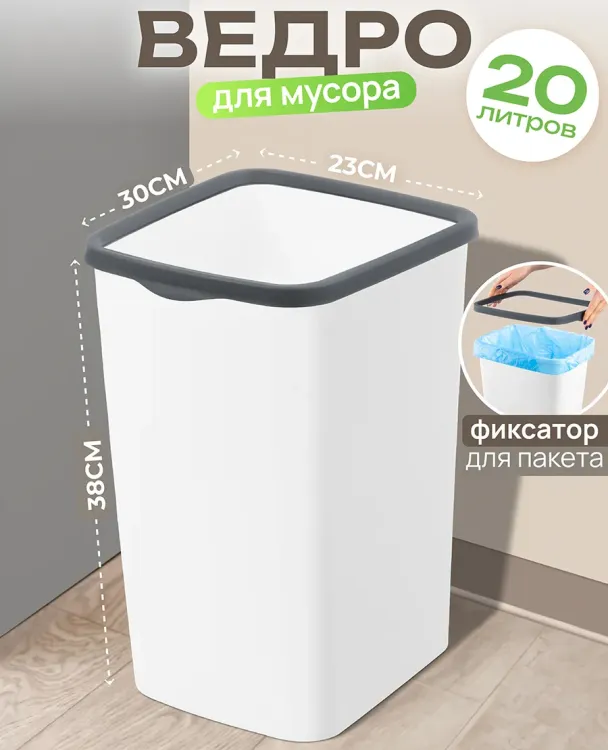 "El Casa" Ведро для мусора с фиксатором "Тандем" 20л, цв.белый