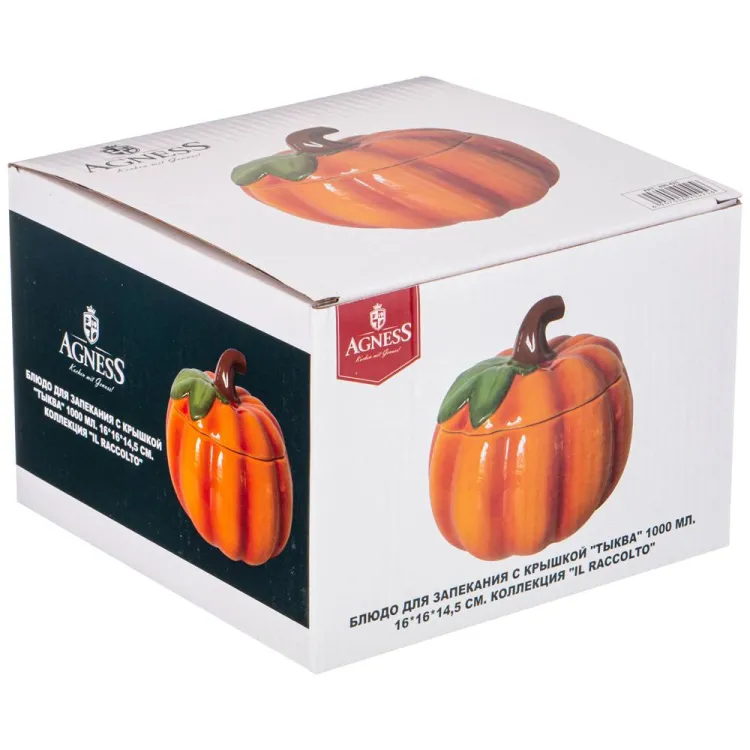 Форма для запекания с крышкой "Тыква" 16х14,5см, 1000мл, цв.оранжевый