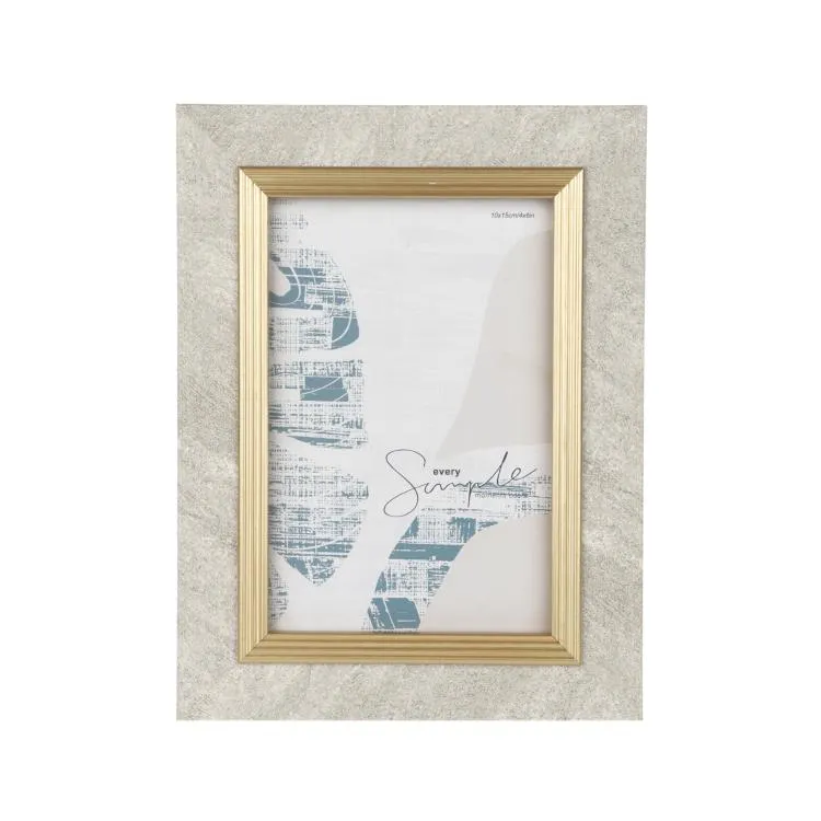 Современная фоторамка в классическом стиле станет идеальным дополнением вашего интерьера, сохраняя теплые воспоминания и украшая любое пространство. Изготовленная из пластика, она отличается прочностью и легкостью, а багет, выполненный под текстуру камня и украшенный золотой рамочкой внутри, придает ей элегантность и изысканность.
