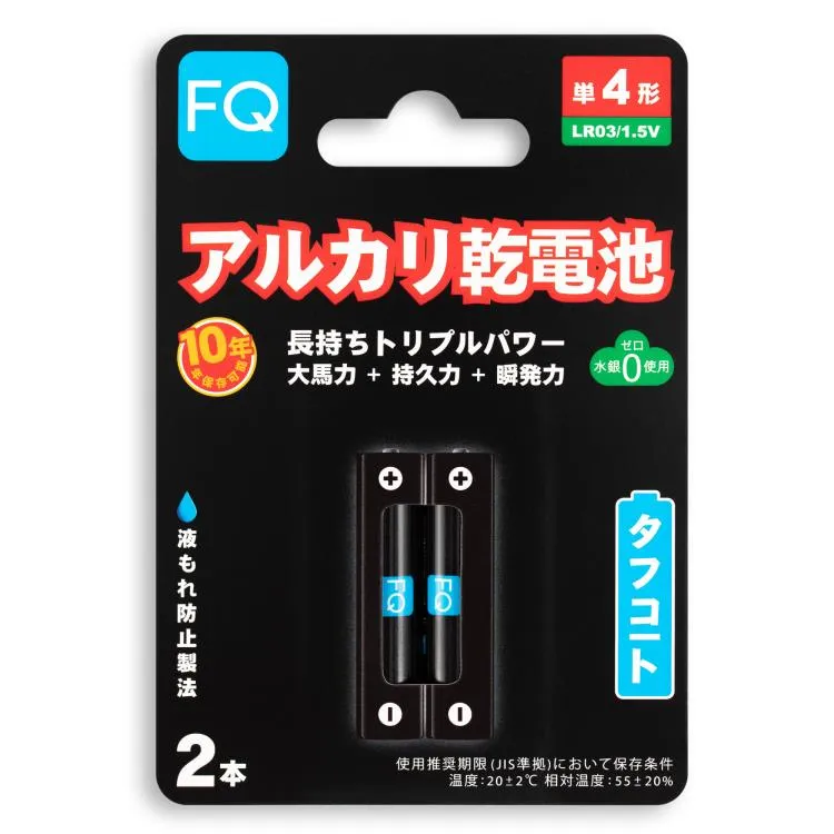 Универсальные щелочные батарейки FQ – надежный источник питания для часто используемых устройств, нуждающихся в увеличенной мощности батареи. В отличие от стандартных солевых батареек, они обладают значительным запасом электроэнергии и низким уровнем саморазряда, что позволит хранить их вне устройства гораздо дольше.