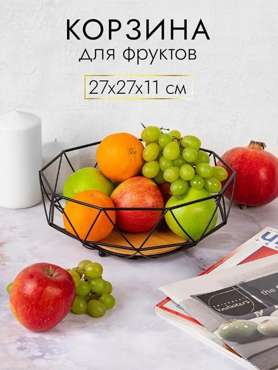 Фруктовница "Черная" с бамбуковым дном 27х27х11см