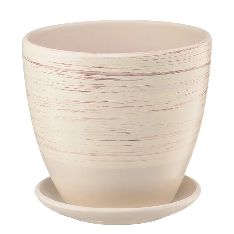 Горшок с поддоном "Волна" d=14,5см h=13см 1,4л бежевый