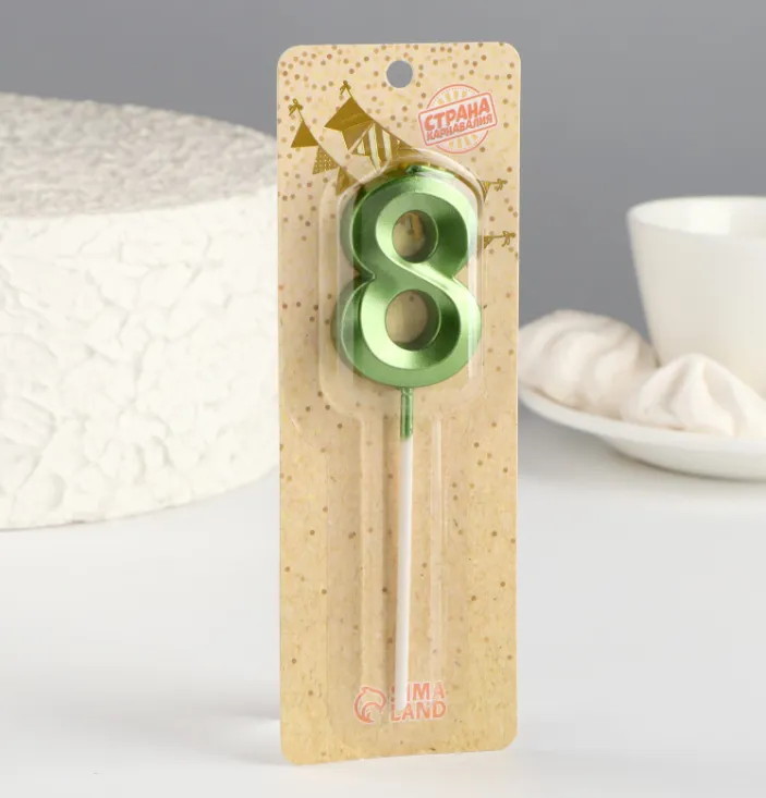 "Грань" Свечи для торта "Цифра 8", цв.изумруд
