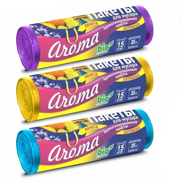 "GRIFON" Мешки для мусора особопроч. ароматиз. "Bio" с завязками ПНД 35л, 15шт. 12мкм