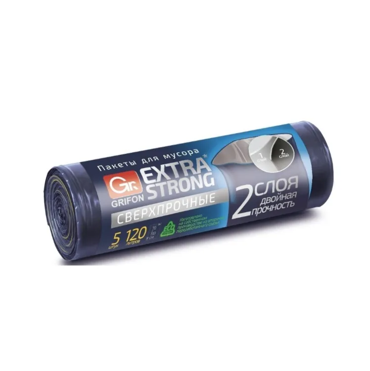 "GRIFON" Мешки для мусора особопроч. двухслойные "STRONG" ПВД 120л, 10шт. 30мкм