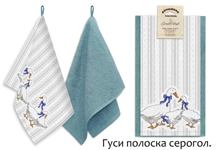 "Гуси и полоска" Набор кухонных полотенец 30х50см, 35х60см, 2шт, цв.серо-голубой