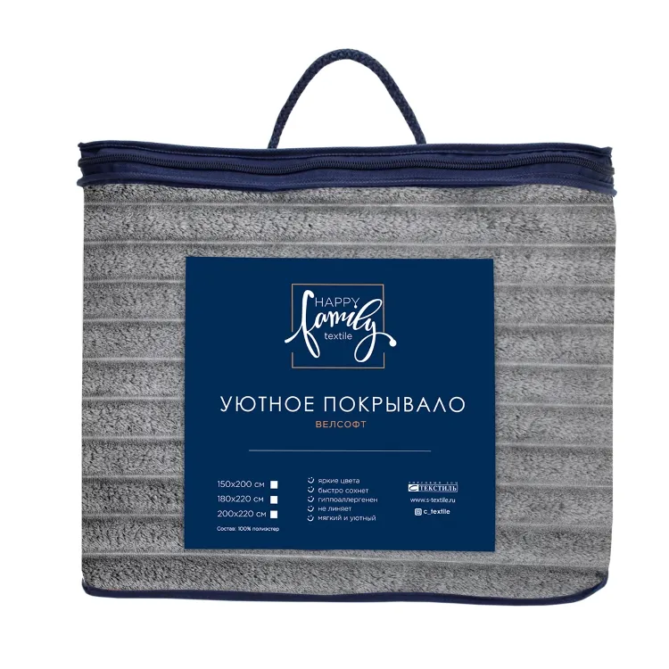 "Happy Family" Покрывало "Волна" 200х220см,цв.серый