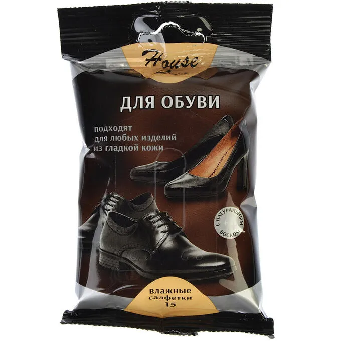"House Lux" Влажные салфетки для обуви из гладкой кожи 15шт.