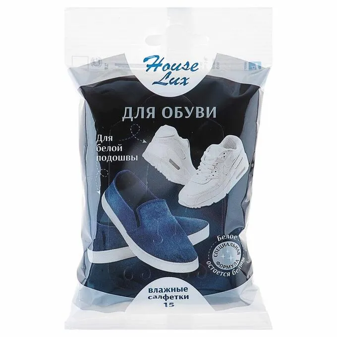 "House Lux" Влажные салфетки для обуви с белой подошвой 15шт.