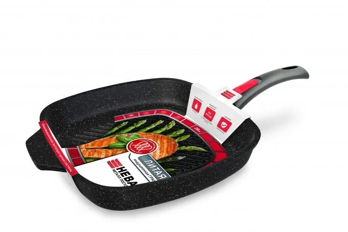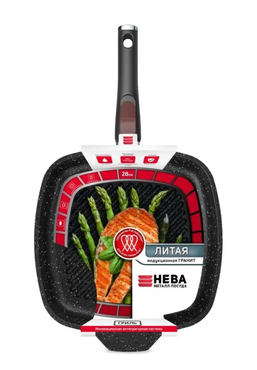 "Индукционная" Гранит" Сковорода-гриль литая с индукционным дном 28х28см, h 4,9см с/р