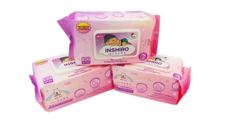 "INSHIRO"PurPure" Влажные салфетки с экстрактом алоэ и ромашки "Детские" 90шт.