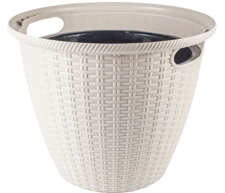 Кашпо напольное "Ротанг" с внутр.горш. d=38см h=38см 16л айвори/сливочный