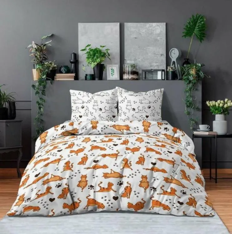 Комплект постельного белья Браво "Котойога" 2сп с евро-простыней, 70х70см, поплин