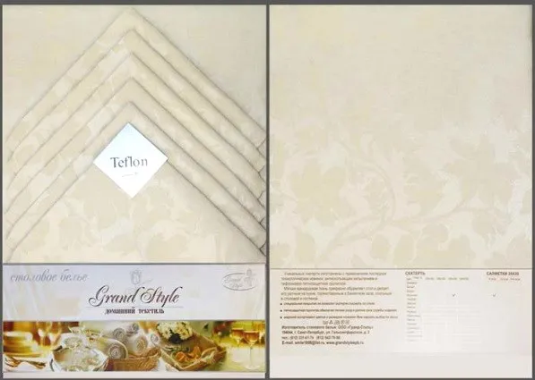 Комплект столовый: скатерть 150х180см, салфетки 6шт, 35х35см, цв.жемчуг