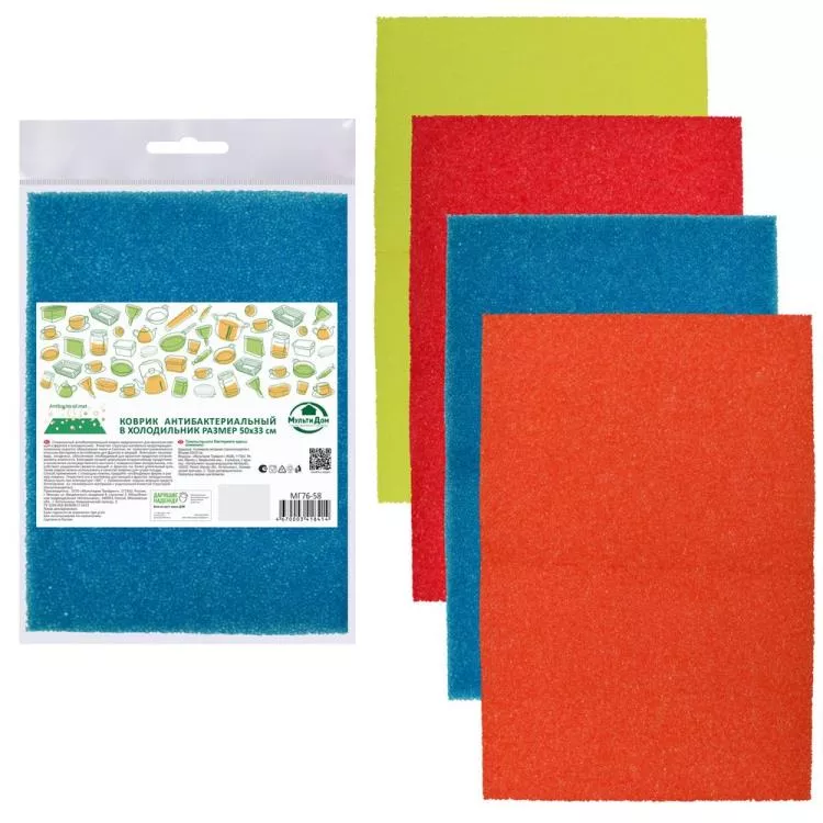 Антибактериальный коврик сделает хранение овощей и фруктов в холодильнике более гигиеничным. Материал обладает ячеистой структурой, которая обеспечивает хорошую вентиляцию воздуха, предотвращает образование сырости, плесени и гнили, не даёт размножаться бактериям в отделах для овощей и фруктов. Коврик впитывает лишнюю влагу и конденсат и обеспечивает благоприятный уровень влажности.