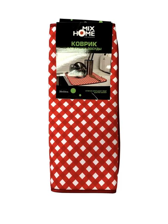 Коврик для сушки посуды 38х50см, пл.250 цв.красная клетка