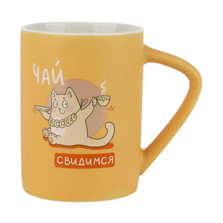 Оранжевая кружка с забавным принтом котика и вдохновляющей надписью "Чай свидимся" станет вашим любимым спутником на протяжении дня. Матовая поверхность придает ей особый шарм и делает приятной на ощупь. А эргономичная ручка обеспечивает комфортный хват.