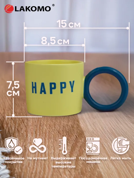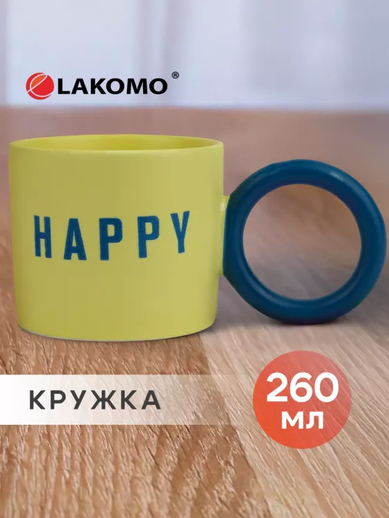 Кружка "Happy" 260мл, цв.светло-желтый и синий