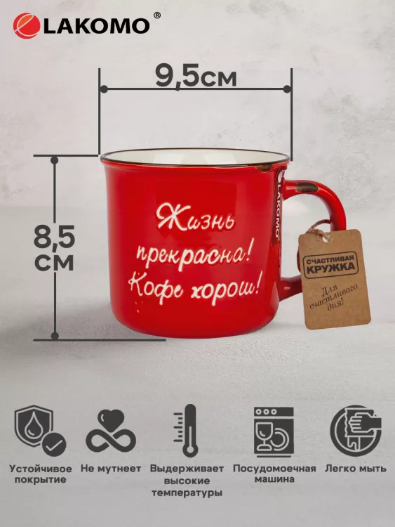 Кружка "Жизнь прекрасна! Кофе хорош!" 370мл, цв.красный