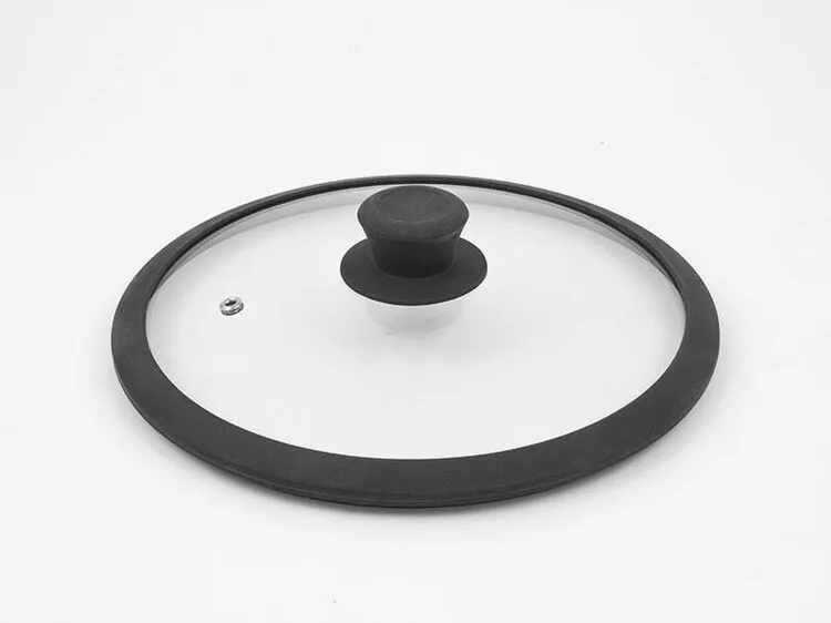 Крышка стекл. 28см с силикон. ободком, низкая, цв.черный