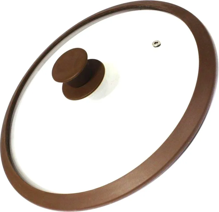 Крышка стекл. 28см с силикон. ободком, низкая, цв.коричневый