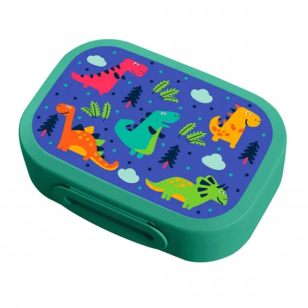 Ланч-бокс "Динозаврики" пластик 0,98л прям 18х13х5см, цв.зеленый