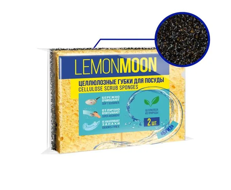 "Lemon Moon" Бриз" Набор губок для посуды, целлюлозные 2шт. 11х6,5х2,5см
