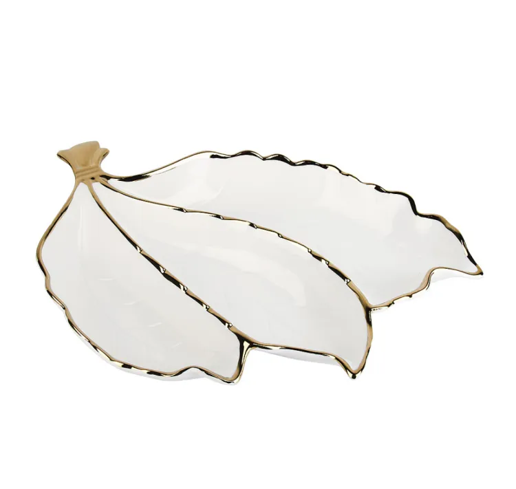 "Маршмеллоу" Менажница 3 секции "Листок" с золотой отводкой 30,5х20,5х4см