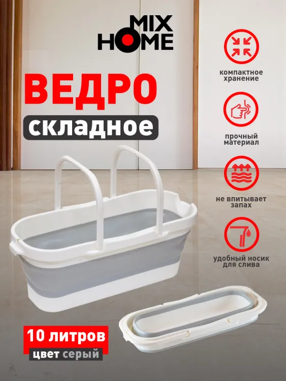 Пластиковое ведро с силиконовыми элементами — идеальный выбор для удобной и эффективной уборки. Его складная конструкция позволяет экономить место, делая ведро компактным и удобным для хранения. Подходит для воды и уборки, в него идеально помещается швабра, обеспечивая легкость в мытье полов и других поверхностей.