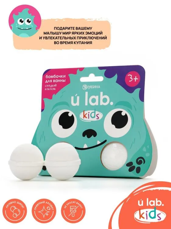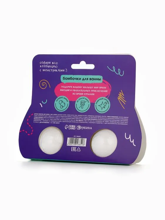 "Монстрики" Бурлящий шар для ванны детский "Сладкий кокосик" 2х40гр