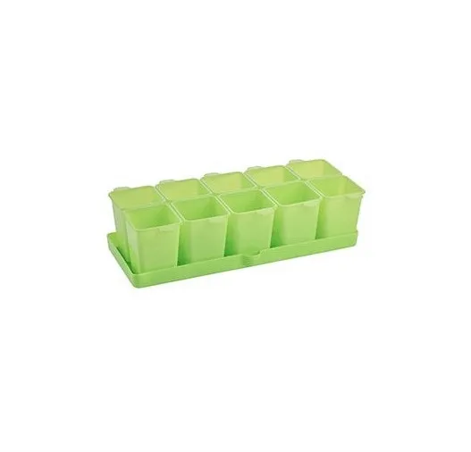 Набор горшков для рассады с поддоном "Flora" 10шт, 36,4х16,9х9,43см, цв.салатовый