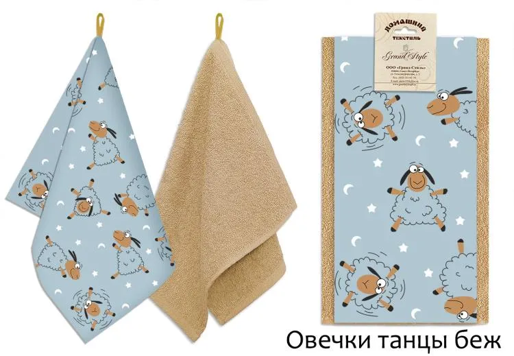 Набор кухонных полотенец "Овечки танцы" 30х50см, 39х60см, 2шт, цв.бежевый