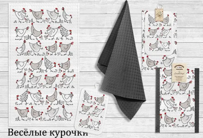 Набор кухонных полотенец "Веселые курочки" 2шт., 35х60см