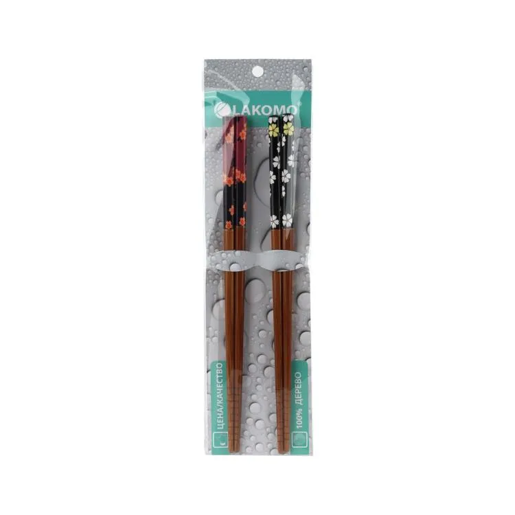 Набор китайских палочек из дерева включает в себя 2 парs, каждая из которых отличается по цветочному принту, добавляя яркости и индивидуальности каждому приему пищи. Эти многоразовые столовые приборы идеально подходят для суши и роллов, а также для других блюд азиатской кухни. Прочные и удобные в использовании, эти палочки станут незаменимым аксессуаром на вашей кухне.