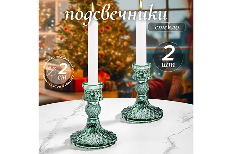 Набор подсвечников "Роскошь" 7,7х7,7х10см 2шт., цв.зеленый