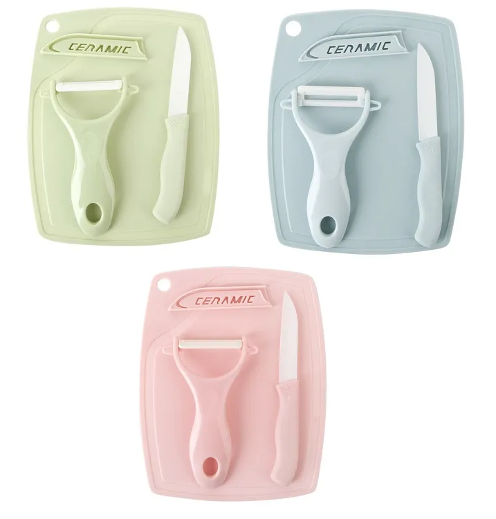 Набор: разделочная доска 15.5х19см, овощечистка, керамический нож 3цв.
