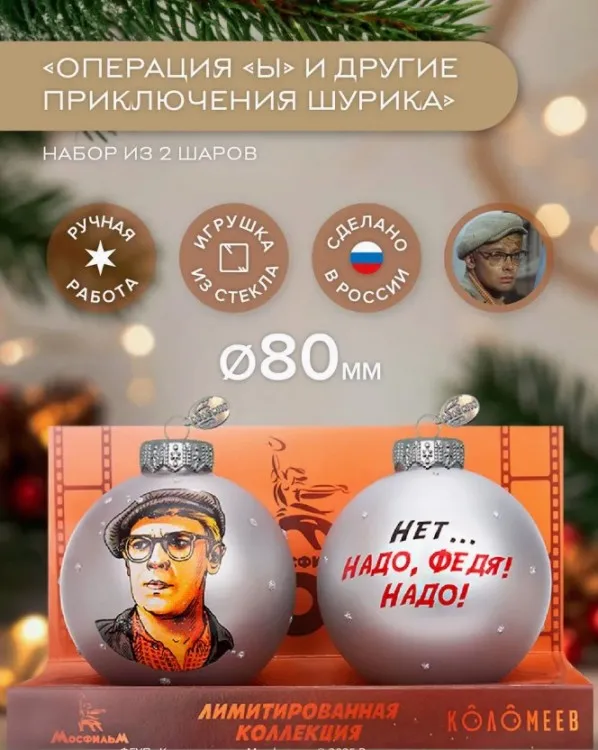Набор шаров новогодних "Мосфильм.Операция "Ы" 8,5см, 2шт в п.у.