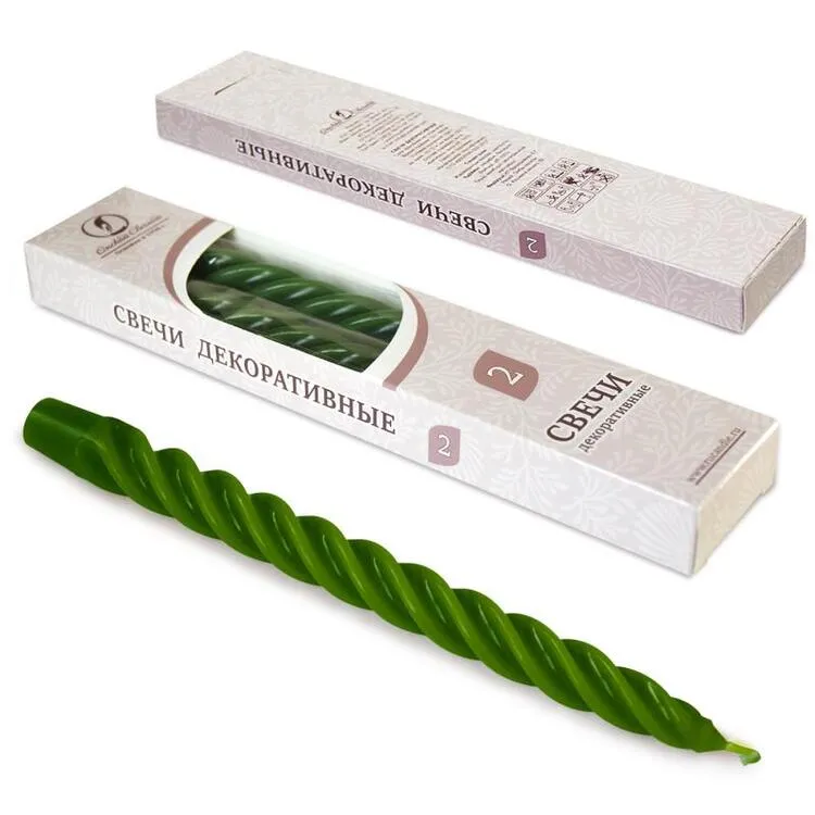 Набор свечей витых 2шт, 24,5см, цв.темно-зеленый