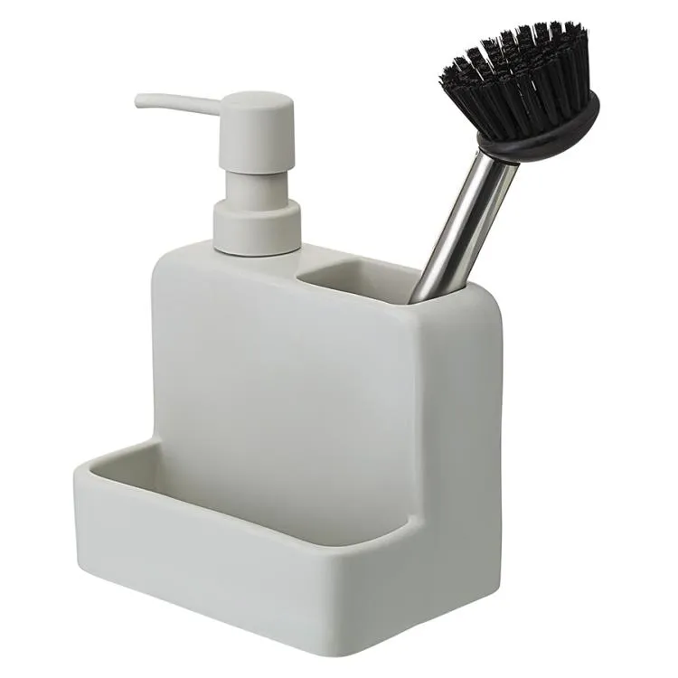 "Noble" Органайзер для раковины (диспенсер + щетка) 280мл цв. светло-серый