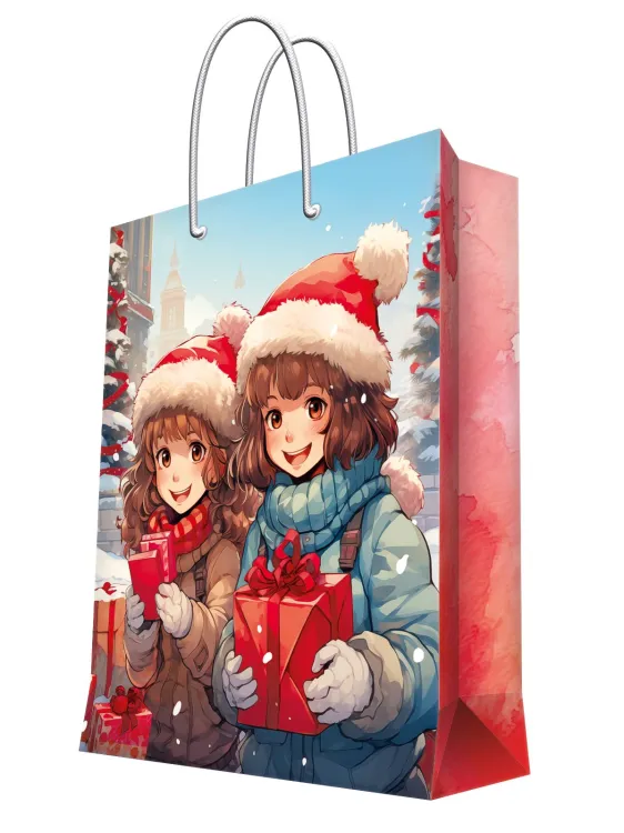 Пакет бумажный "Детки с подарками" 26х32,4х12,7см