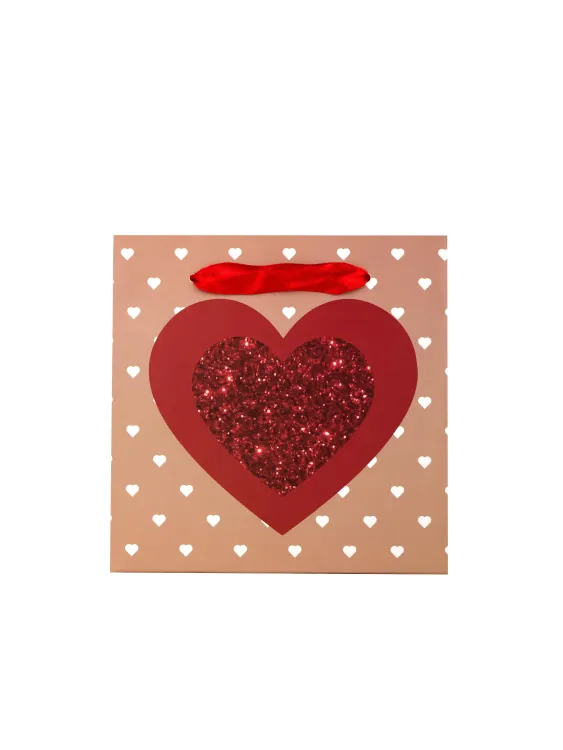 Пакет бумажный "Красное сердце" 15х15х12cм