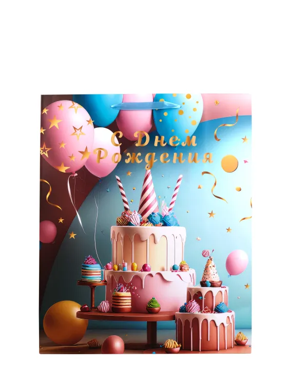 Пакет бумажный "С Днем Рождения!" 55х45х20см