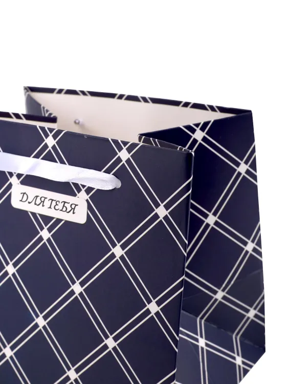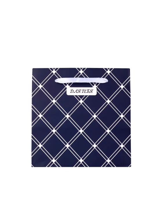 Пакет бумажный "Синяя клетка" 15х15х12см