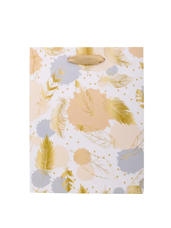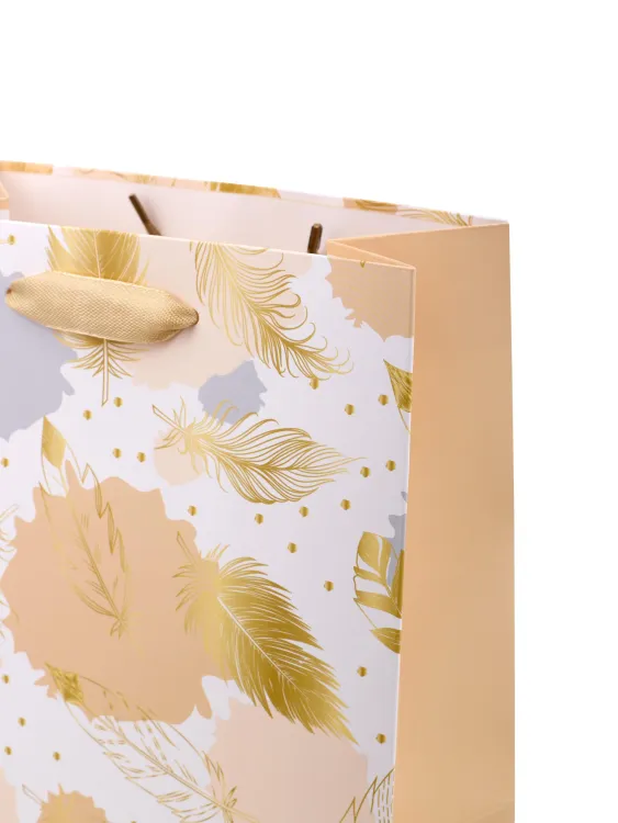 Пакет бумажный "Золотые перья" 23х18х10см золотой