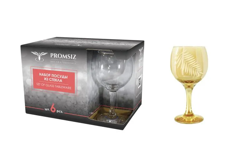 "Папоротник" Набор бокалов для вина 6шт. 260мл, цв.янтарь