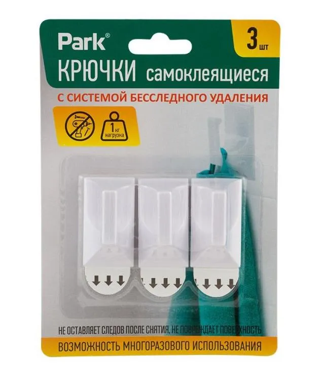 "Park" Набор крючков с системой бесследного удаления 3шт. 2,5х4,5см, цв.белый